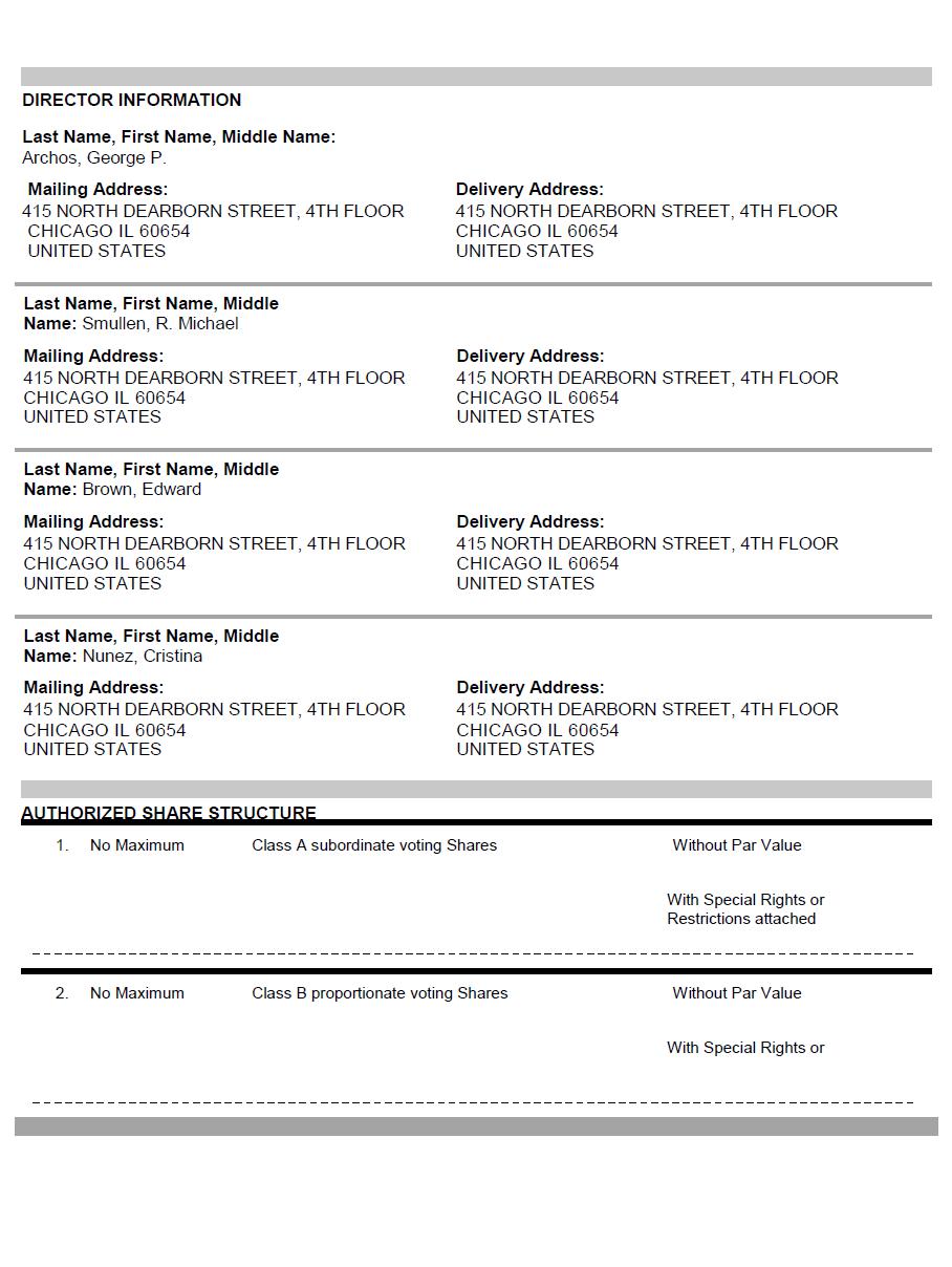 | PART 26 SPECIAL RIGHTS AND RESTRICTIONS ATTACHED TO SUBORDINATE VOTING SHARES | 22 | |