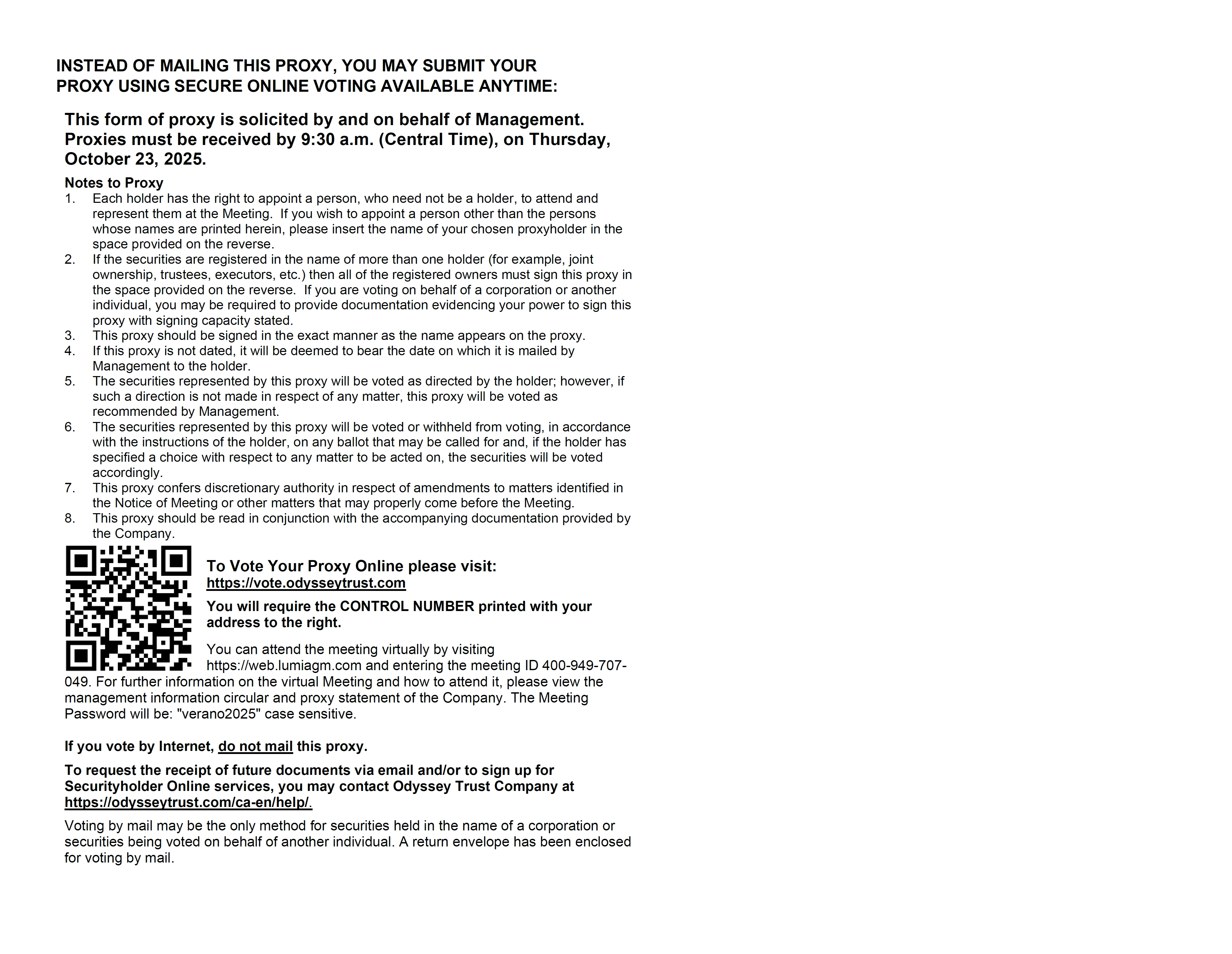 Your proxy card must be received by our proxy tabulator, Odyssey Trust Company, no later than 9:30 a.m. (Central Time) on October 23, 2025 or, if the Meeting is adjourned, at least 48 hours (excluding Saturdays, Sundays and statutory holidays in the Province of British Columbia) before the beginning of the Meeting following any adjournments thereof. If you are a non-registered holder, please provide your voting directions by the time specified by your intermediary.